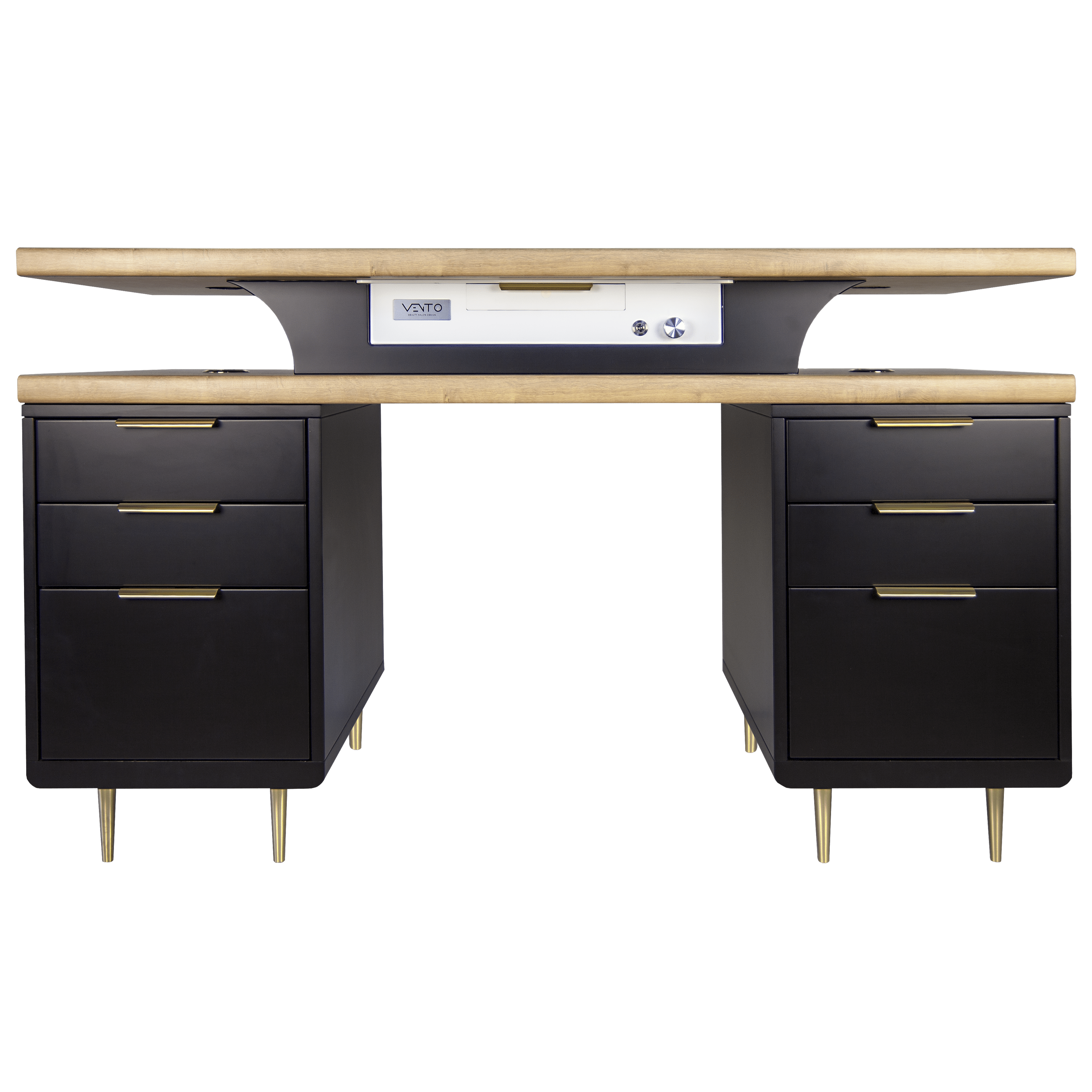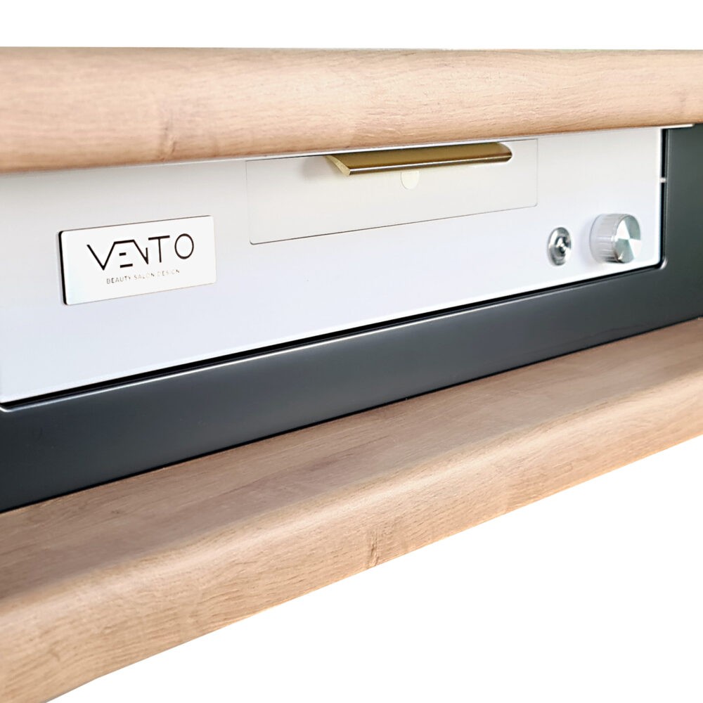 Biurko Black Cavier z pochłaniaczem pyłu VENTO PRO PLUS – zostało wykonane z najwyższej jakości materiałów –blat pokryty został antybakteryjną powłoką stosowaną w laboratoriach. Powierzchnia blatów jest matowa i odporna na zarysowania oraz chemię używaną podczas stylizacji paznokci, natomiast kontenery są lakierowane w połysku.