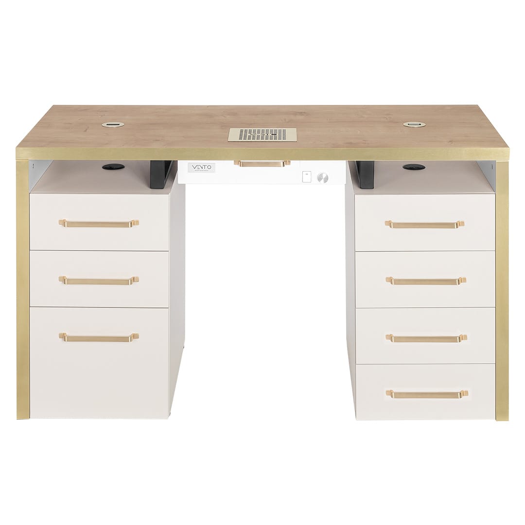 Wbudowany pochłaniacz pyłu Vento Pro+ (opcjonalnie) – profesjonalne rozwiązanie dla stylistek paznokci, zapewniające czyste i zdrowe środowisko pracy (możliwość wyboru w opcjach konfiguracji).
