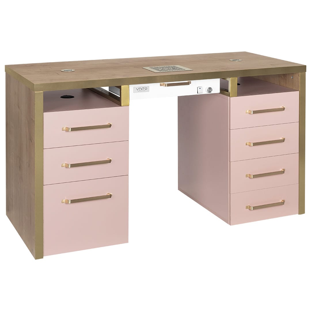 Biurko Kosmetyczne Lusso Rosa z pochłaniaczem pyłu VENTO PRO PLUS bądź bez pochłaniacza (opcja do wyboru) – Elegancja i Funkcjonalność dla Profesjonalistek