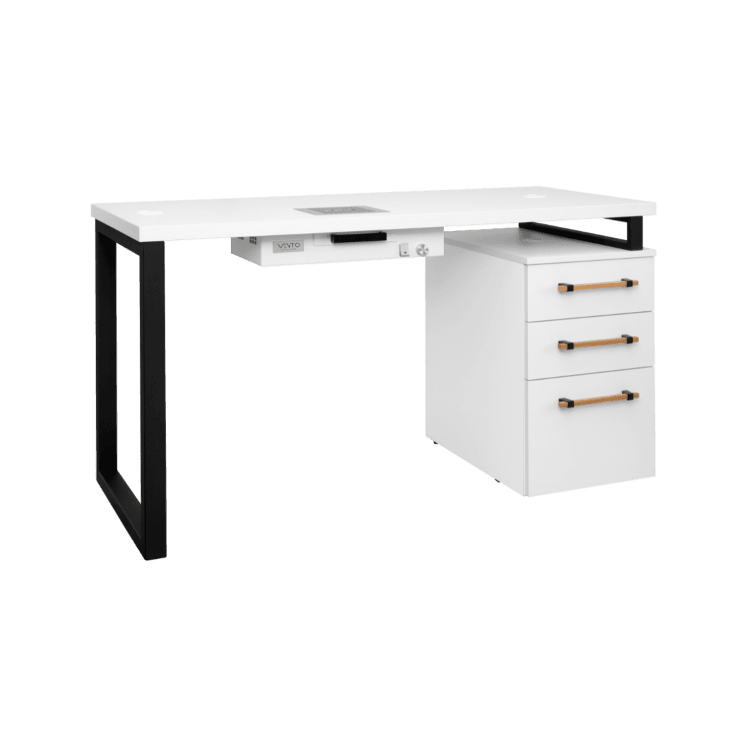 Blat pokryty został antybakteryjną powłoką stosowaną w laboratoriach. Zarówno powierzchnia blatu jak i reszta elementów jest matowa i odporna na zarysowania oraz chemię używaną podczas stylizacji paznokci. Nasze biurko to produkt zaprojektowany od A do Z z myślą o Twoich potrzebach jako stylistki paznokci.