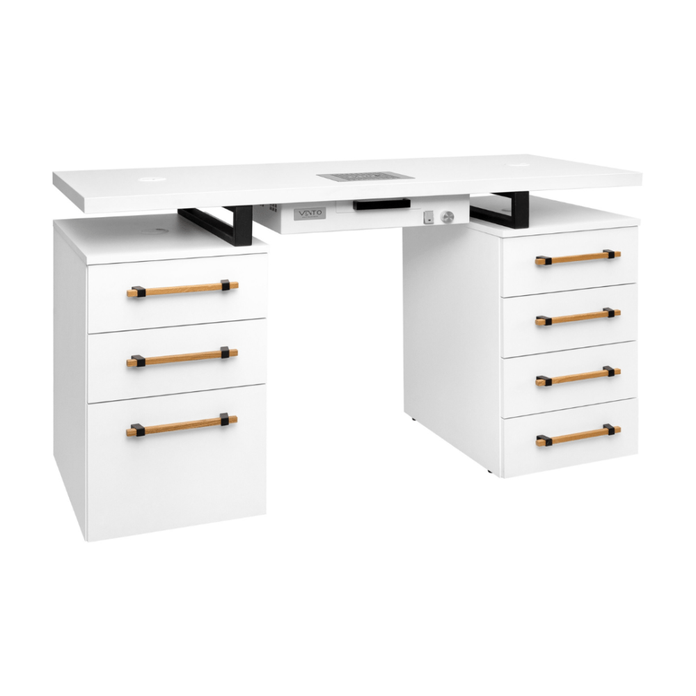 Biurko Moderno Duo 5 z pochłaniaczem pyłu VENTO PRO PLUS zostało wykonane z najwyższej jakości materiałów –blat pokryty został antybakteryjną powłoką stosowaną w laboratoriach. Zarówno powierzchnia blatu jak i reszta elementów jest matowa i odporna na zarysowania oraz chemię używaną podczas stylizacji paznokci. Nasze biurko to produkt zaprojektowany od A do Z z myślą o Twoich potrzebach jako stylistki paznokci.