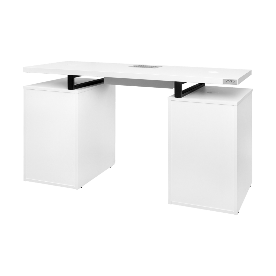 Biurko Moderno Duo 5 z pochłaniaczem pyłu VENTO PRO PLUS to elegancka i funkcjonalna propozycja do nowoczesnych wnętrz. Charakteryzuje się ono prostą formą, która doskonale wpasuje się w estetykę loftowych salonów. Wykonane z połączenia białego blatu z białymi kontenerami oferuje zarówno estetykę, jak i praktyczność.