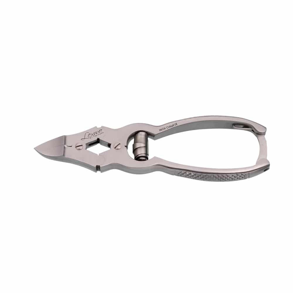 Wysokiej jakości cęgi firmy Lexwo ze spiralną amortyzującą sprężyną taśmową przeznaczone do grubych, mocno zrogowaciałych paznokci.