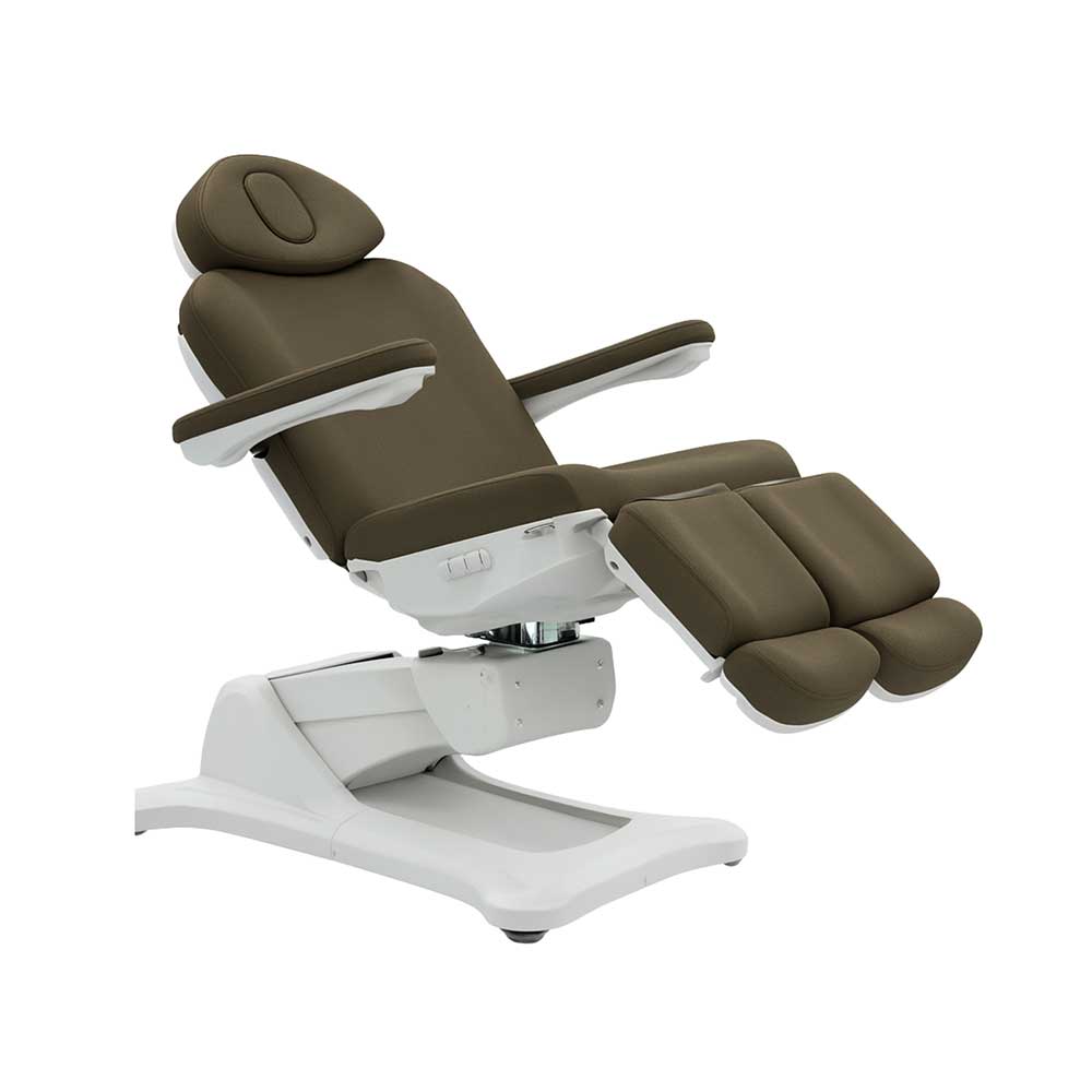 Wyposażony w trzy mocne siłowniki elektryczne, obracaną podstawę i precyzyjne mechanizmy regulacji, fotel łączy niezawodność, stabilność i nowoczesny design, czyniąc go idealnym rozwiązaniem do profesjonalnych gabinetów podologicznych, kosmetologicznych i medycyny estetycznej.