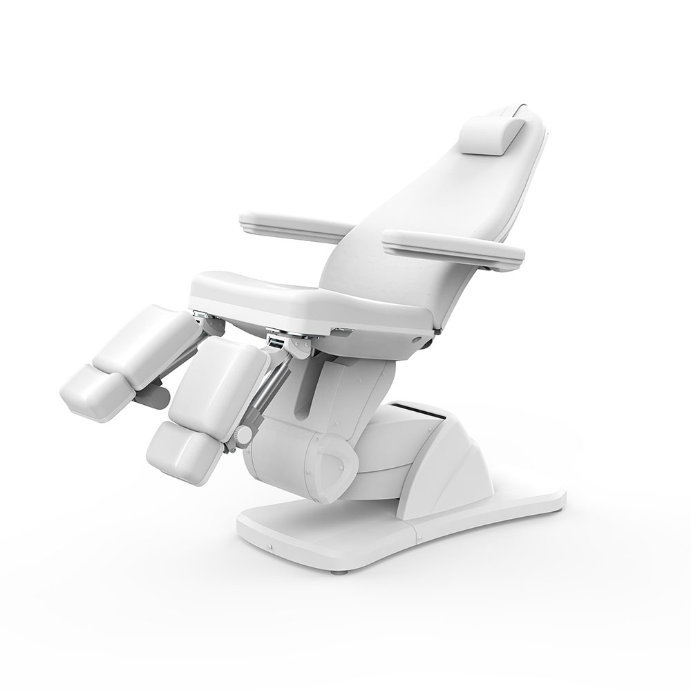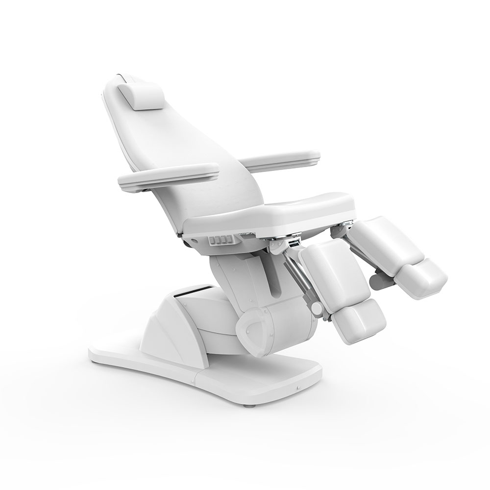 • Komfort pacjenta: Wydłużane i regulowane podnóżki (90°) oraz zintegrowana poduszka pod głowę zwiększają wygodę. Opcjonalne podgrzewanie dodaje luksusowego wymiaru.