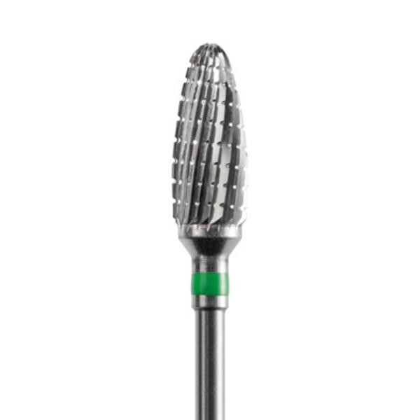 Frez wykonany ze spiekanych węglików, bardzo mocny i wytrzymały przeznaczony do obróbki żelu, akrylu oraz bardzo pogrubiałych i twardych paznokci. Frez ma kształt owalny i posiada skręcone nacięcia krzyżowe precyzyjnie wykonane. Frez jest produkcji niemieckiej firmy Acurata specjalizującej się w produkcji rotacyjnych narzędzi podologicznych. Frez może być sterylizowany w autoklawie.