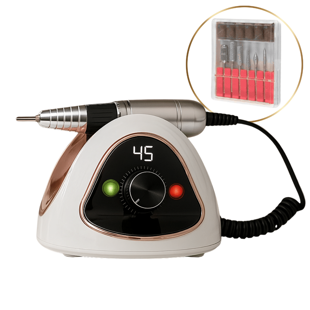 Mała i poręczna frezarka doskonale zmieści się na każdym blacie biurka stylistki. Bardzo cicha!