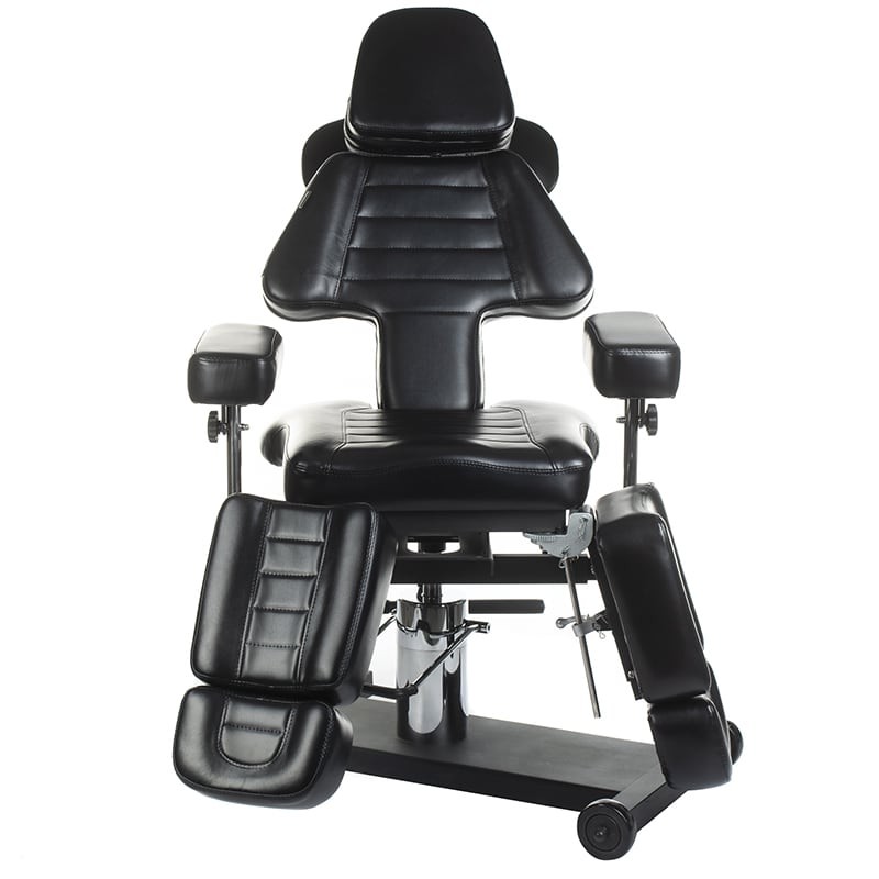 Proponujemy hydrauliczny fotel do wykonywania tatuażu o eleganckiej czarnej stylistyce. Obicie wykonane w połysku z wysokogatunkowej skóry ekologicznej. Głęboka czerń to nie jedyna zaleta obicia, które jest bardzo praktyczne i łatwe w utrzymaniu czystości. Ten profesjonalny sprzęt jest bardzo funkcjonalny: hydrauliczna regulacja wysokości oraz położenia podparcia pleców, regulowane podłokietniki oraz kółka w podstawie to atuty modelu. Zainwestuj w najlepsze wyposażenie do salonu urody. Hydrauliczny fotel do tatuażu LARI marki INKOO to idealny wybór!