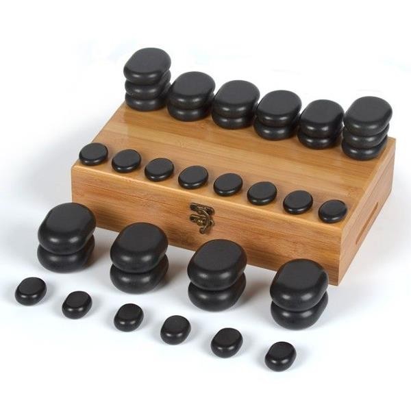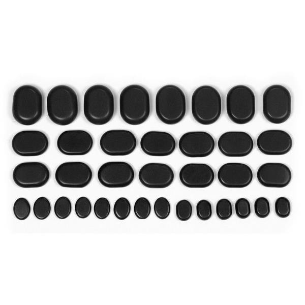 Zestaw 45 sztuk polerowanych kamieni bazaltowych do masażu.