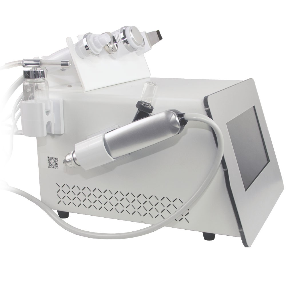 Kombajn 7w1 AquaPeel BR-069A bardzo skutecznie usuwa zaskórniki ,zwęża pory i reguluje wydzielanie sebum. Bardzo delikatna forma peelingu dla skóry ,nawet trądzikowej Pomaga zwęzić naczyńka. Usuwa problemy ze skórą szarą, zmęczoną albo z nadmiernym łojotokiem. Nawadnia i dotlenia, poprawia cyrkulację krwi. Redukuje także blizny po trądziku, spłyca zmarszczki, usuwa drobne przebarwienia i poprawia koloryt skóry. Ponadto urządzenie wyposażone jest w takie funkcje jak hydrodermabrazja, dermabrazja, peeling kawitacyjny z sonoforezą, ultradźwięki, RF, głowicę COLD oraz spray.