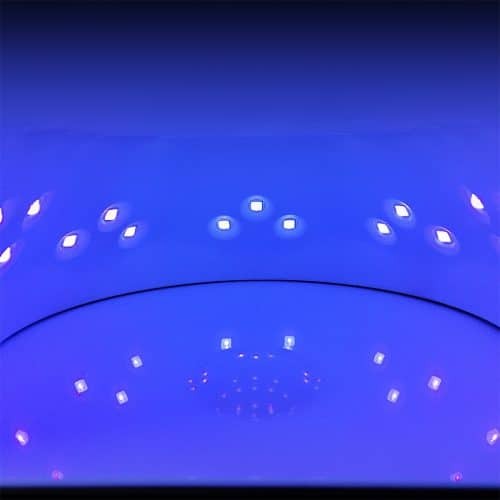 Użycie lampy gwarantuje szybkie utwardzenie każdego żelu czy hybrydy. Diody w lampie rozłożone są w kształt litery U, co powoduje, że światło dociera równomiernie do wszystkich paznokci, oświetlając je równomiernie z każdej strony prze 39 punktów LED.