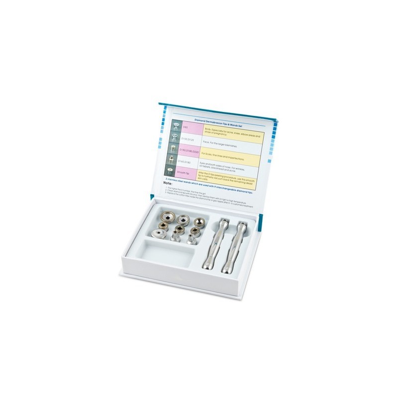 Mikrodermabrazja diamentowa jest nowoczesną i bardzo skuteczną metodą mechanicznego złuszczania rogowej warstwy naskórka. Rezultaty są widoczne natychmiast po zabiegu, dlatego tak wiele Klientów właśnie go wybiera. W związku z tym warto wybrać urządzenie wysokiej klasy, które zagwarantuje doskonałe efekty. W zestawie znajdują się 2 pióra, 8 końcówek diamentowych oraz jedna gładka końcówka do masażu!