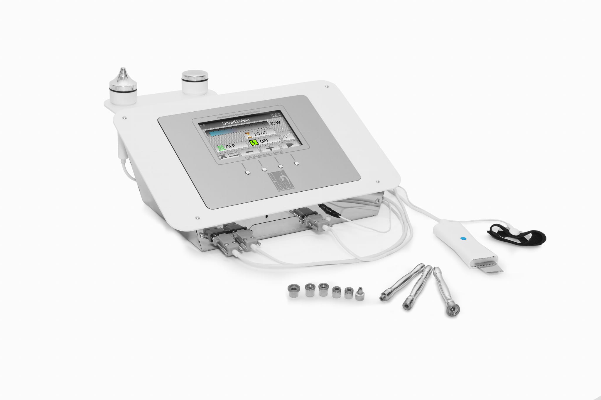 ULTRADŹWIĘKI Hebe Jest to urządzenie do terapii ultradźwiękowej, wyposażone w dwie głowice - płaską i stożkową. Głowice ultradźwiękowe Hebe umożliwiają ponadto wykorzystanie prądów galwanicznych.