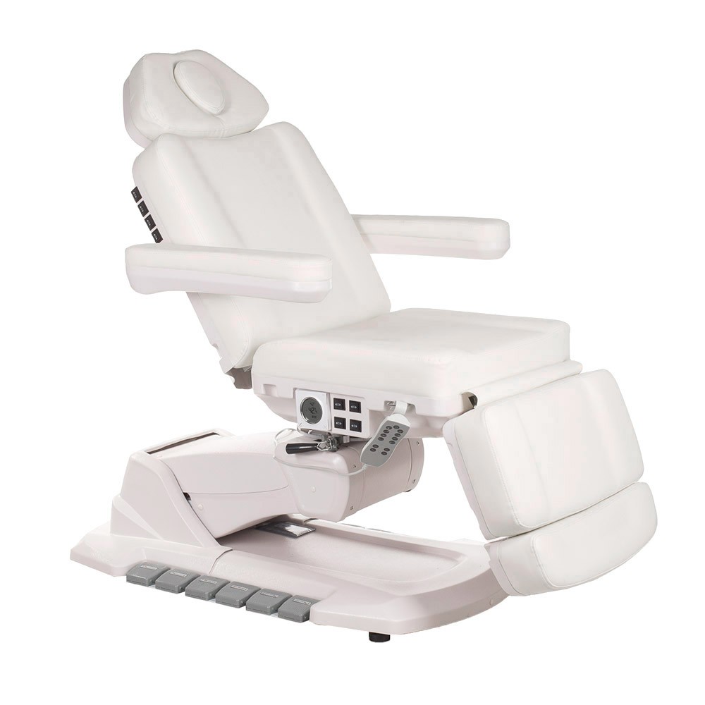 Elektrycznie regulowana wysokość siedziska, kąt podparcia pleców, podnóżek i tzw kołyska.