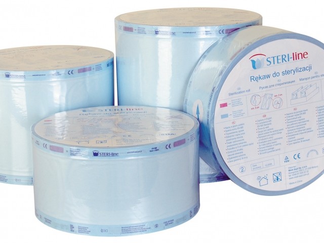 Rękaw do sterylizacji płaskiej marki STERI-line przeznaczony jest do sterylizacji narzędzi parą wodną w nadciśnieniu lub tlenkiem etylenu. Spełnia wymagania zawarte w normie EN868 oraz EN11607, posiada znak CEi rejestrację jako wyrób medyczny.