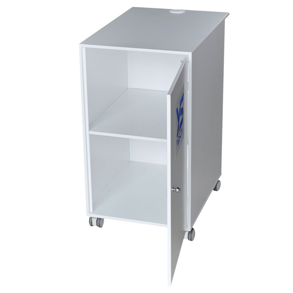 ✔ Praktyczne przechowywanie – Otwierane drzwiczki i metalowa półka pozwalają na schowanie niezbędnych akcesoriów, a przepust na przewód zasilający w blacie ułatwia podłączenie autoklawu.