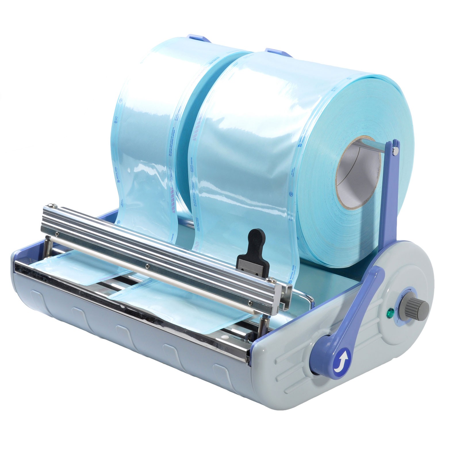 Zgrzewarka o kompaktowej budowie pomocna w przygotowaniu pakietów papierowo-foliowych przeznaczonych do sterylizacji narzędzi w autoklawie.